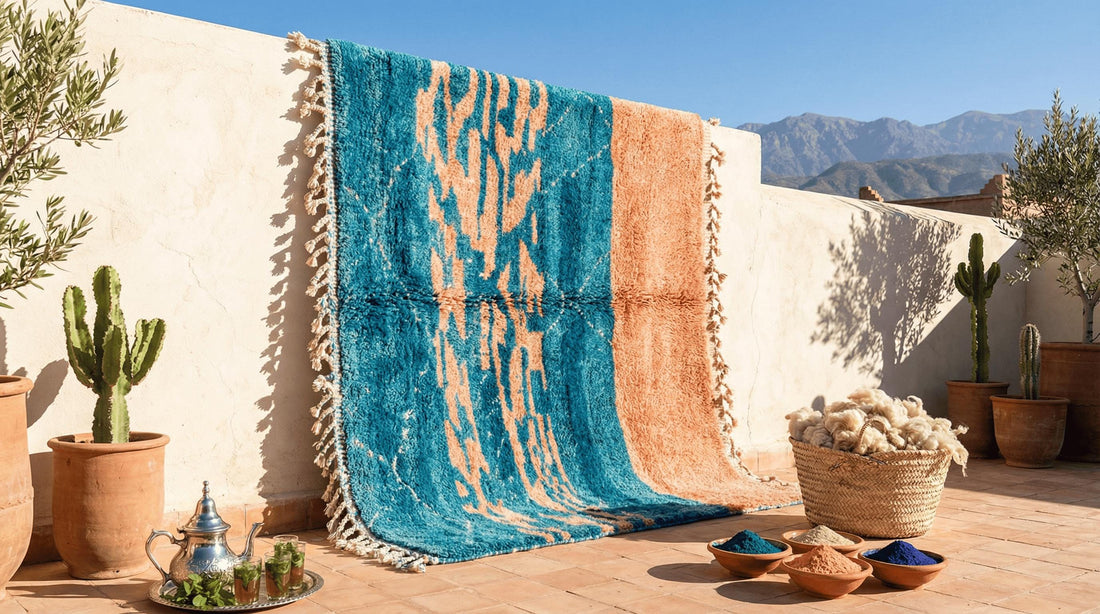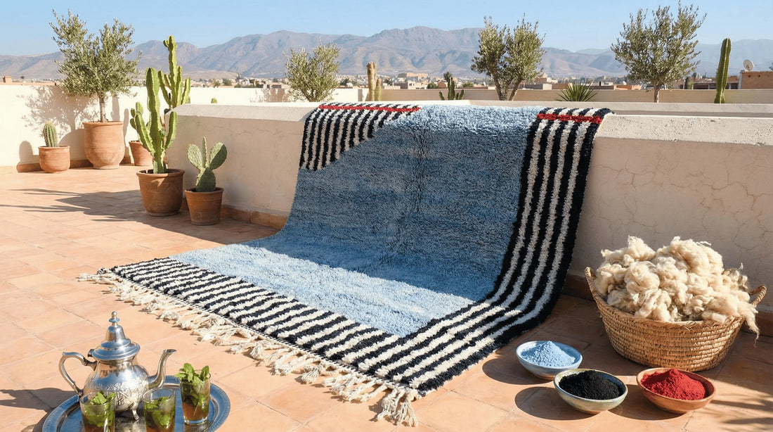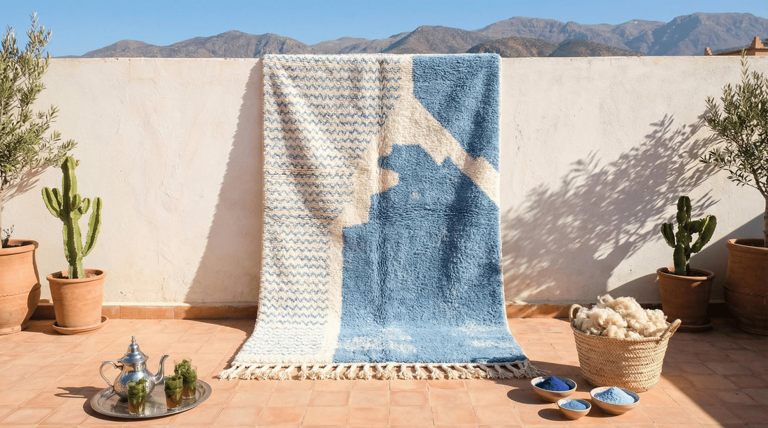 Hand-Knotted Moroccan Blue Azilal Rug | Custom Wool Berber
