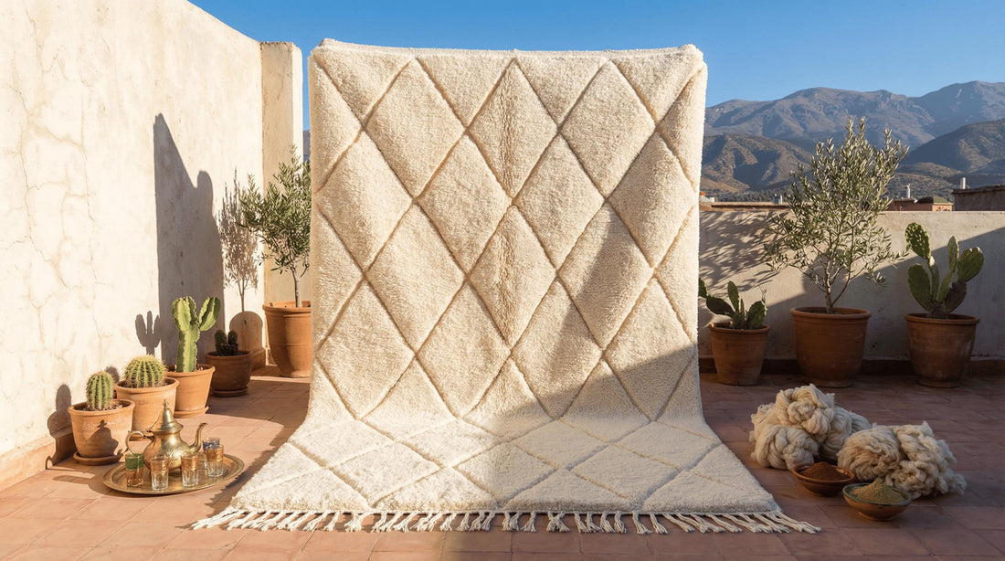 Hand-Knotted Beni Ourain Rug, Custom Moroccan White Wool Rug