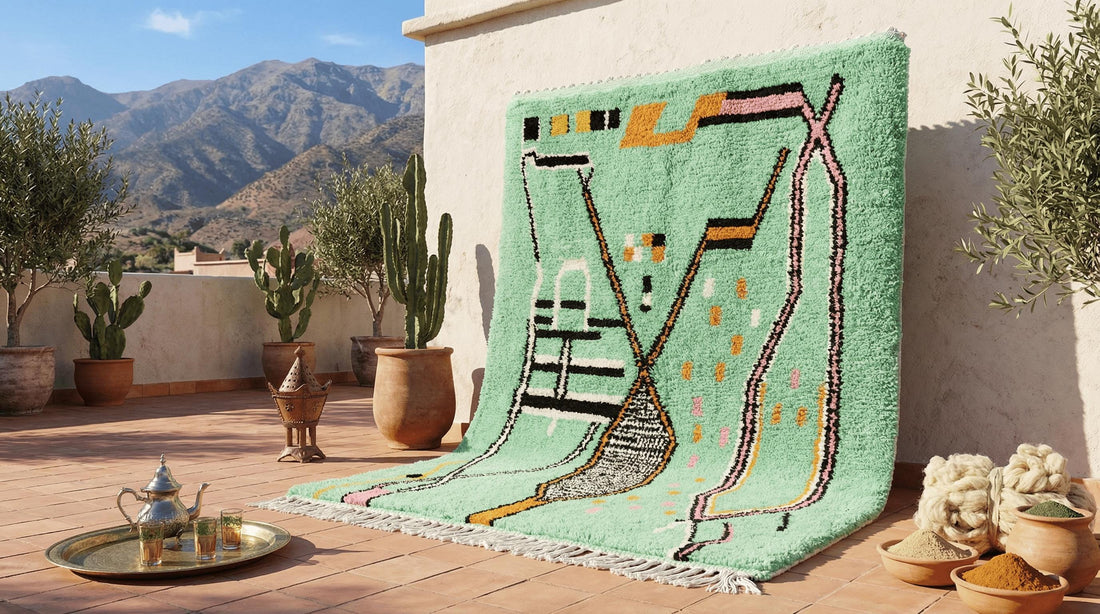 Morocan abstract Green rug Moroccan Rug | Custom Azilal Berber, Natural Wool