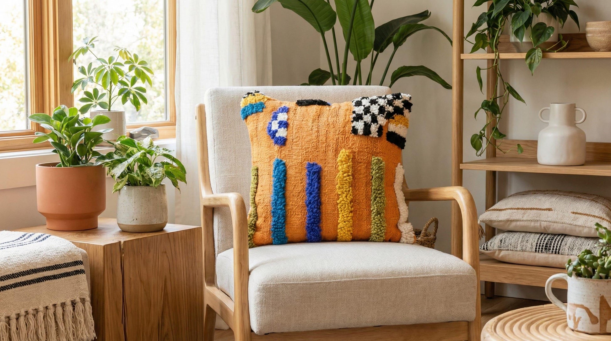 ✔ Neutral Orange tones that blend beautifully with boho décor