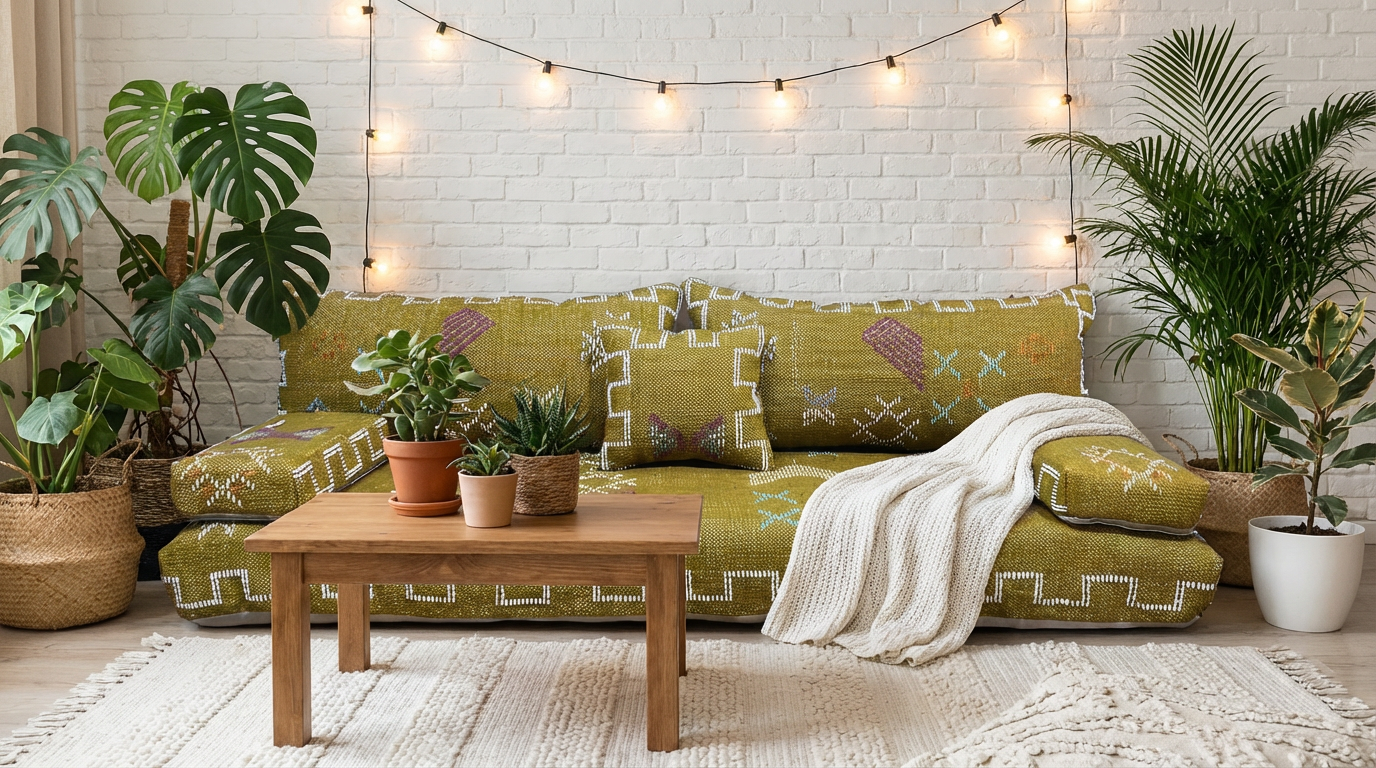 Every Boho Sofa piece is thoughtfully handcrafted to bring both beauty and comfort into your home. Inspired by Moroccan artistry and traditional weaving techniques, our sofas and floor couches are designed to create a warm, inviting atmosphere while providing exceptional support for daily living. From the choice of premium fabrics to the intricate detailing and vibrant patterns, each product tells a story of craftsmanship and authenticity. Whether you’re curling up with a book, hosting friends, or adding a statement piece to your living space, Boho Sofa blends timeless design with modern comfort to elevate every corner of your home.