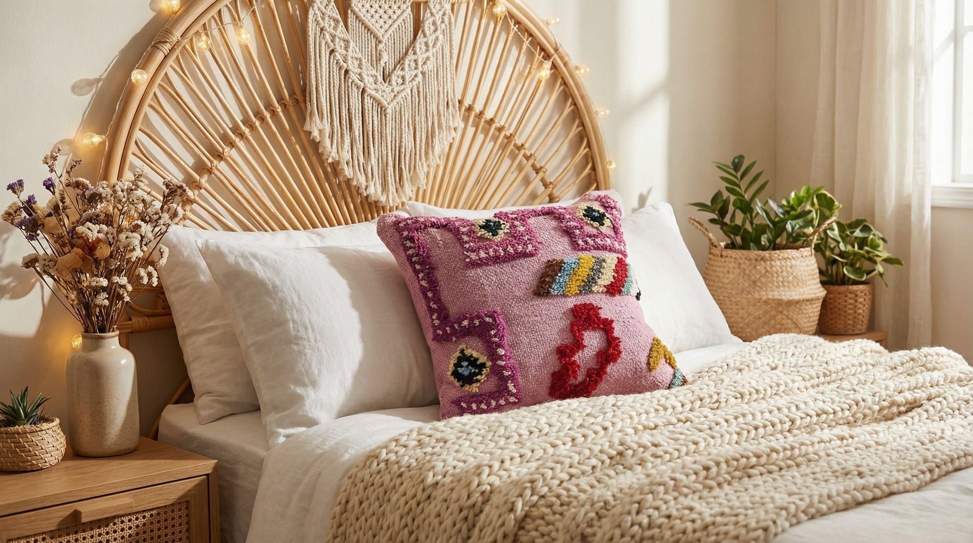 ✔ Neutral pink tones that blend beautifully with boho décor